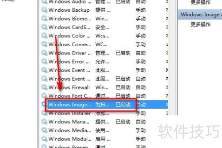 5、 在右侧菜单栏中找到Windows图像采集服务,点击后即可查看其详细描述信息。