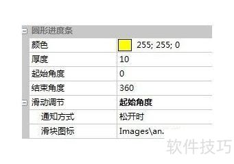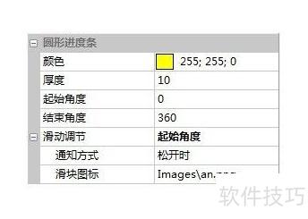 12、 圆形进度条可自定义颜色、粗细、起止角度及滑动方式等参数,具体设置所示。