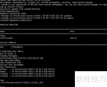 4、 接着欧艳需执行命令安装证书:yum install certificates。