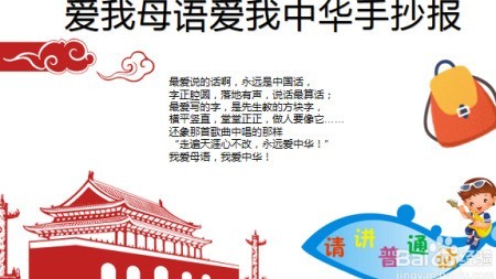 5、 在手抄报中央撰写爱我母语,爱我中华主题内容,突出语言文化传承。