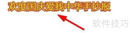 7、 在手抄报下方绘制边框,框内书写欢度国庆 爱我中华八个大字。
