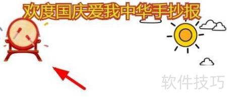 3、 在手抄报左前方绘制一面鼓,庆祝国庆。