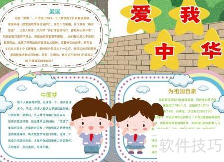 2、 绘制爱我中华主题文本框,增添图案与色彩,提升手抄报整体美观度。