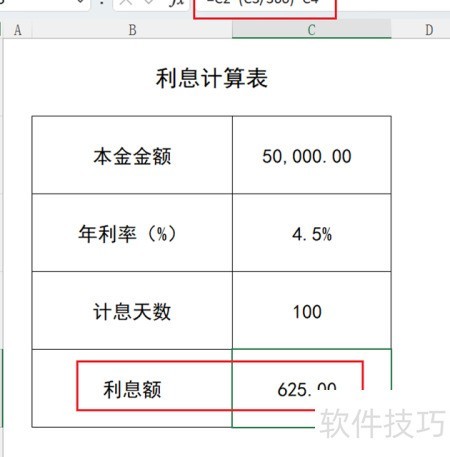 4、 按条件算出利息,在表格中输入相应公式即可。