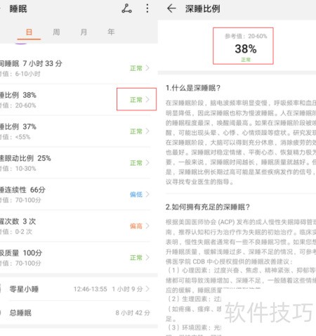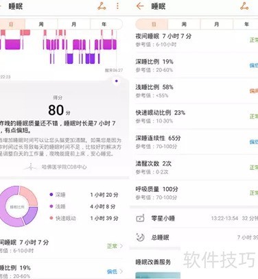 3、 睡眠评分是衡量睡眠质量的综合指标,通过分析总睡眠时长及各睡眠阶段所占比例等多个参数计算得出,反映整体睡眠状况。