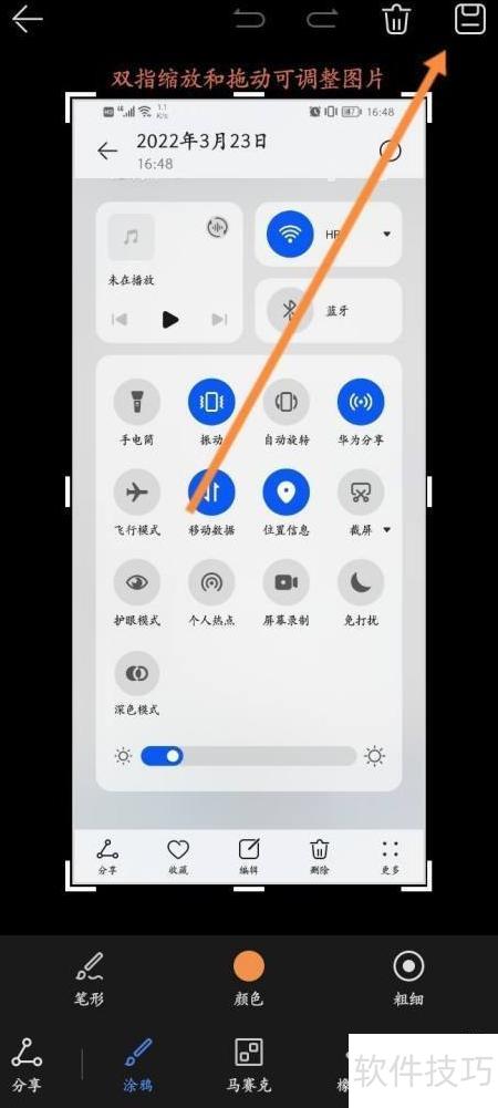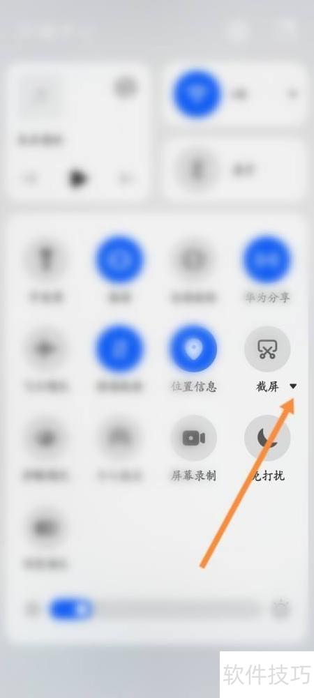 1、 下滑屏幕,点击倒三角图标进行截屏。