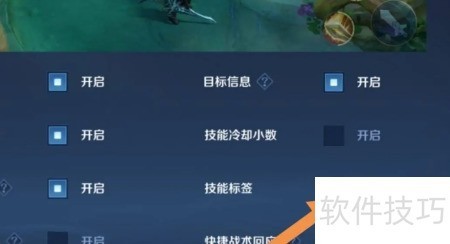 3、 进入界面后点击开启技能标签显示功能。