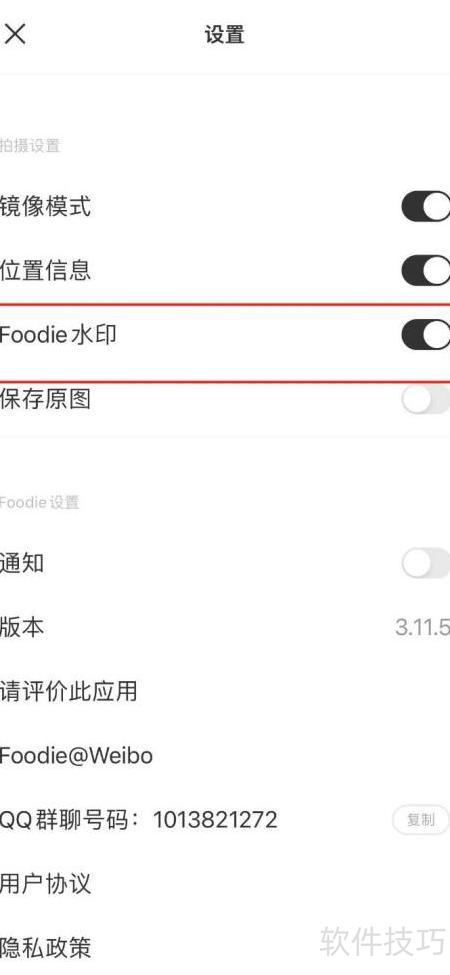 关闭foodie相机水印,进入设置找到水印选项并关闭即可。