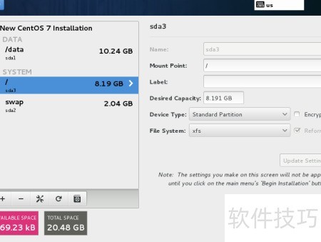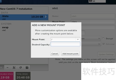 22、 将剩余空间挂载至该目录。