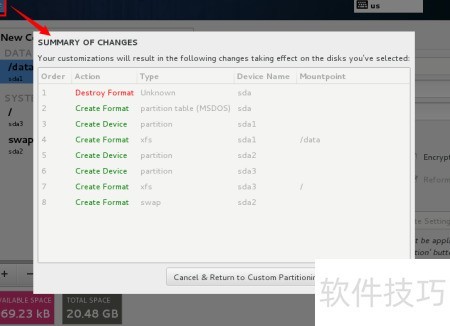 23、 完成分区后,系统将显示Accept Changes提示。