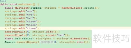 2、 Guava引入了名为Multiset的集合类型,允许集合中存在多个相同元素。该类提供了统计某一元素出现次数的方法,并支持将Multiset转换为普通集合,便于在不同场景下灵活使用,增强了集合操作的便利性与功能性。