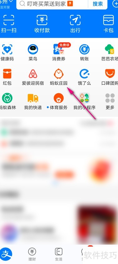 1、 进入软件主界面后选择蚂蚁庄园。