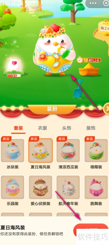 4、 预览海风穿搭效果,点击底部解锁图标。