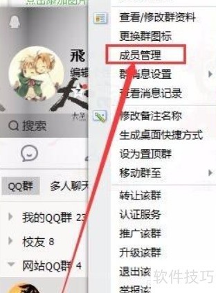 6、 在QQ群列表中选择目标群,右键点击进入成员管理,即可批量设置管理员。