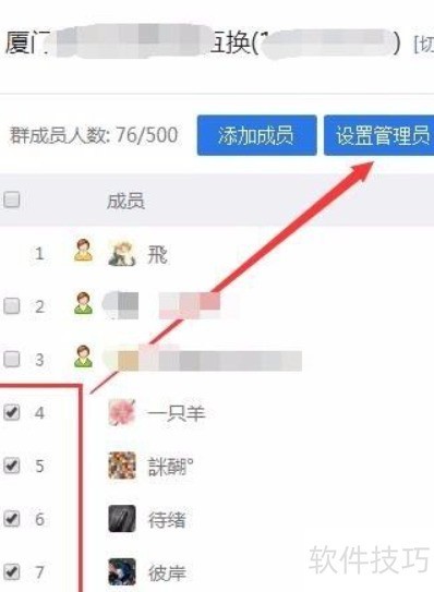 10、 在QQ群官网的成员管理页面,勾选需设为管理员的成员,点击设置管理员按钮即可完成操作。