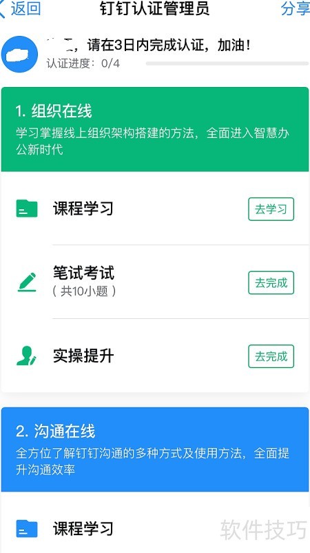 6、 参加认证即参与学习,组织提供在线课程,完成学习后进行笔试考核。