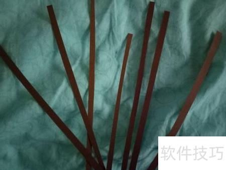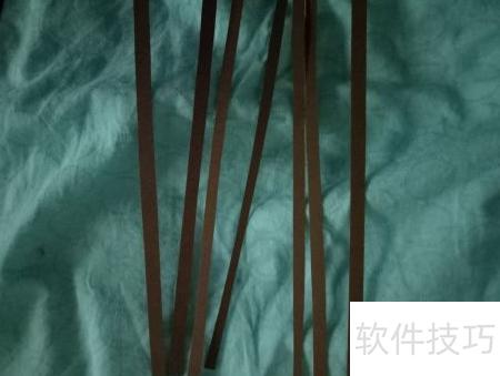 3、 接下来,需将棕色纸张裁剪成细长条状。在梅—衍纸DIY教程中,这类长条是制作卷纸的基础材料,大多数卷形均由此方式成型。为完成后续步骤,我们应先按照图示尺寸裁出所需数量的棕色纸条,以备卷制使用。