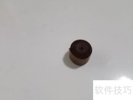 4、 可以借助圆形桶状工具辅助操作,将长条纸卷成筒状后取出,再紧密卷成实心圆卷,所示。在梅—衍纸DIY教程中,此类步骤使用频繁,务必熟练掌握。根据图案设计需求,还需灵活调整卷法,制作出不同形态的纸卷,才能顺利完成梅—衍纸作品的制作,并用于后续的教程演示过程,确保成品美观且符合设计要求。