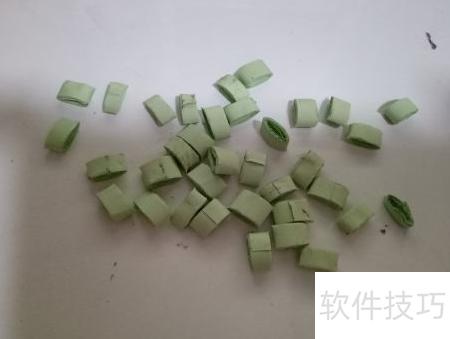 10、 接下来需用绿色纸张卷成类似花瓣的小纸卷,作为梅花树的叶子。建议多制作一些,正如文中提到的,衍纸手工中卷纸步骤繁多且细致,只有熟练掌握技巧,才能提升效率,加快制作速度,这也是完成作品的关键所在。