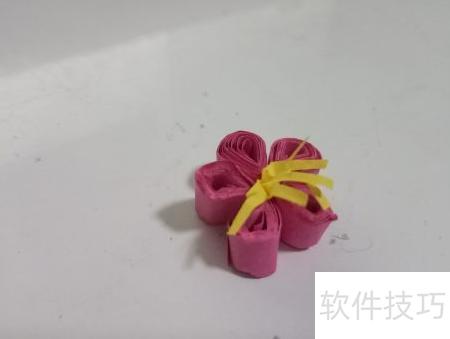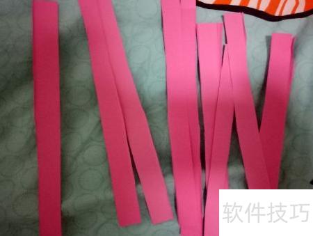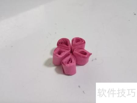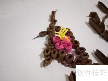 6、 接下来需裁剪多条粉色纸条,采用与之前卷棕色纸条相同的方法进行卷曲。由于粉色纸条用于制作梅花花瓣,卷好后将一端向单侧压扁捏紧,即可形成自然的花瓣造型,具体效果可参考图示。在后续制作梅花或其他衍纸作品时,应根据实际需求灵活调整卷纸与折叠方式,通过不同手法的变化,能创作出形态各异、富有层次感的艺术效果。
