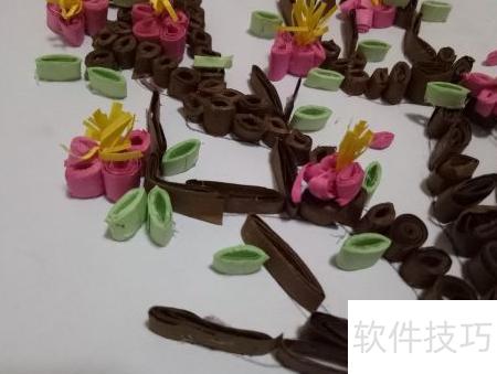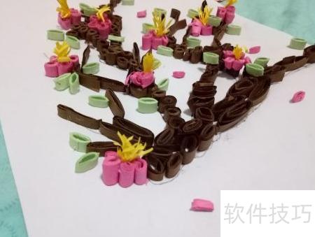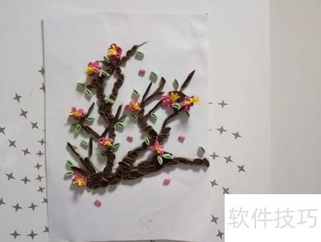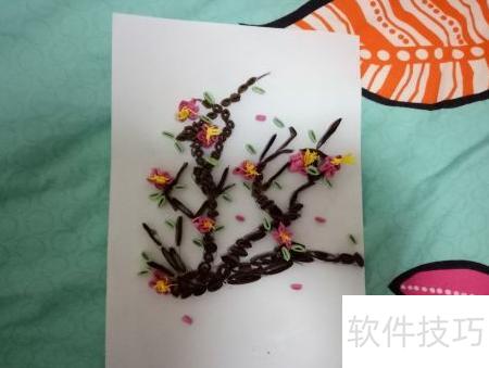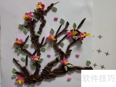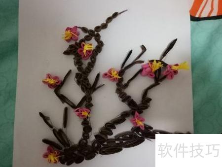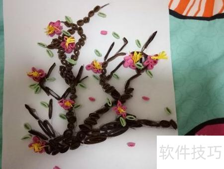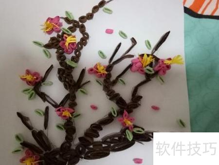 11、 将卷好的梅花树叶按照设计图案摆放在合适位置,注意布局美观、层次分明,避免杂乱,这样一幅精致的梅花衍纸作品便完成了。整个制作过程主要依靠个人创意、熟练的卷纸技巧、不同的卷形折叠方式以及足够的耐心与细心。只要用心投入,每个人都能掌握这项手工艺术。梅花衍纸DIY不仅操作简单,而且富有乐趣,适合各类手工爱好者尝试学习。通过亲手制作,不仅能提升动手能力,还能创作出独一无二的心意之作,享受艺术带来的满足与宁静。