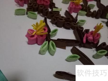 1、 首先准备好所需材料,包括棕色彩纸用于制作梅树干,粉色纸做梅花,绿色纸制叶片,黄色纸作花蕊。同时备好剪刀和胶棒等工具。按照以下步骤,一步步完成梅花衍纸的手工制作。通过详细图解与操作说明,清晰展示每个环节的技巧与要点,帮助大家轻松掌握这项手工技艺,完成精美的梅花衍纸作品。