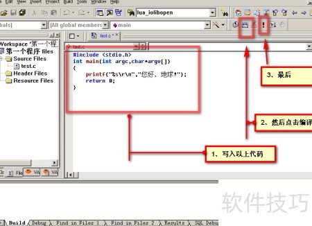 第一个C语言程序并不复杂,只需按图示步骤操作,即可顺利完成编写。