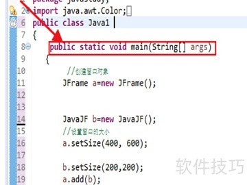 8、 创建一个JFrame实例对象a,用于构建图形用户界面窗口。