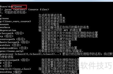 28、 在命令行输入javac,同样会显示大量帮助信息。