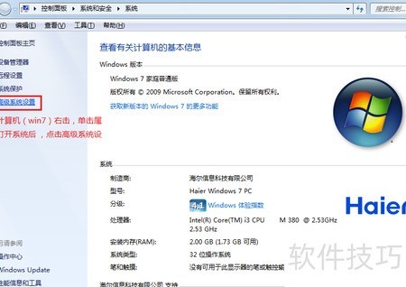 19、 右键点击计算机(Win7),选择属性进入系统界面,随后点击高级系统设置。