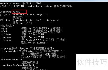27、 在命令提示符中输入java并回车,即可查看详细的帮助信息。