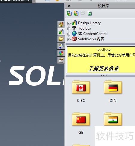 今天在使用SolidWorks调用标准件时,遇到Failed to create toolboxlibrary object错误提示。网上搜索大量资料,未能找到简便有效的解决方案。经过反复尝试和探索,最终成功解决问题。现将解决方法整理分享,希望能帮助遇到同样问题的用户快速恢复软件功能,提升设计效率,避免因工具库无法加载而影响正常工作进度。