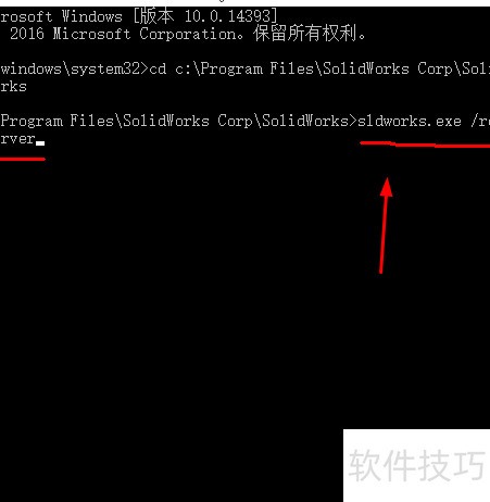 6、 重新输入 sldworks.exe /regserver,操作所示。