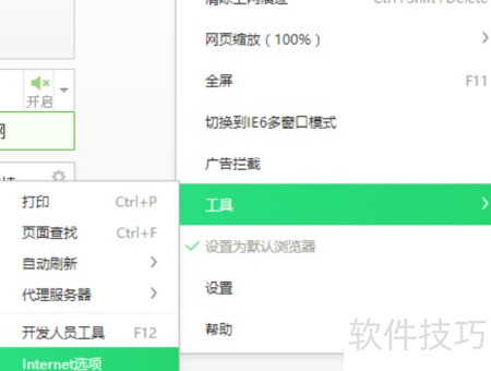 2、 在工具菜单的工驼痕具中可找到Internet选项设置。