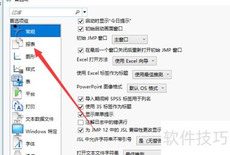 2、 进入弹出窗口后,点击左侧报表选项