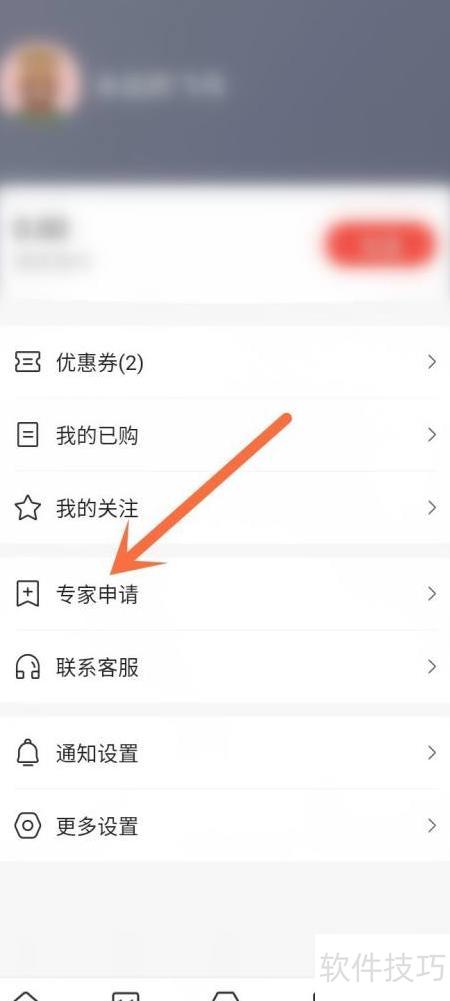 1、 进入软件个人页面,选择专家申请功能。