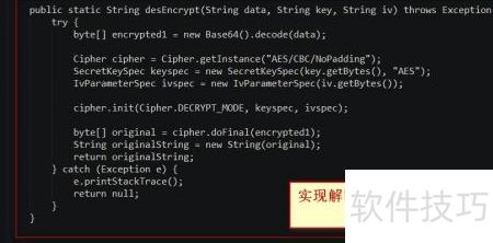 3、 登录方法中接收前端参数,调用解密函数进行数据解密处理,具体实现代码如下所示。
