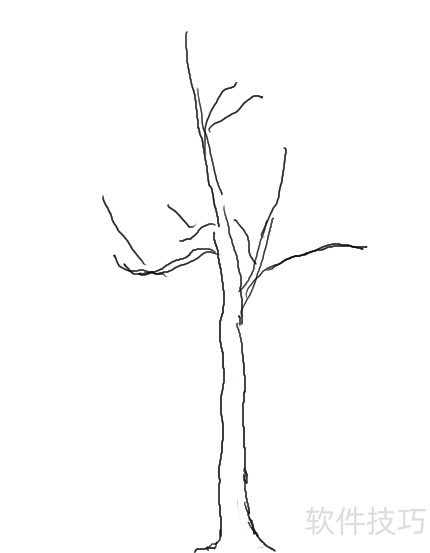 1、 用粗铅笔勾勒树干外形