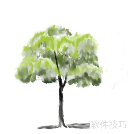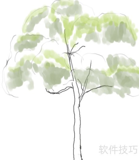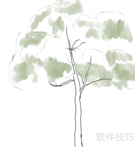 6、 修剪树冠与主干,添上枝条,擦除多余线条,并为树干添加阴影。