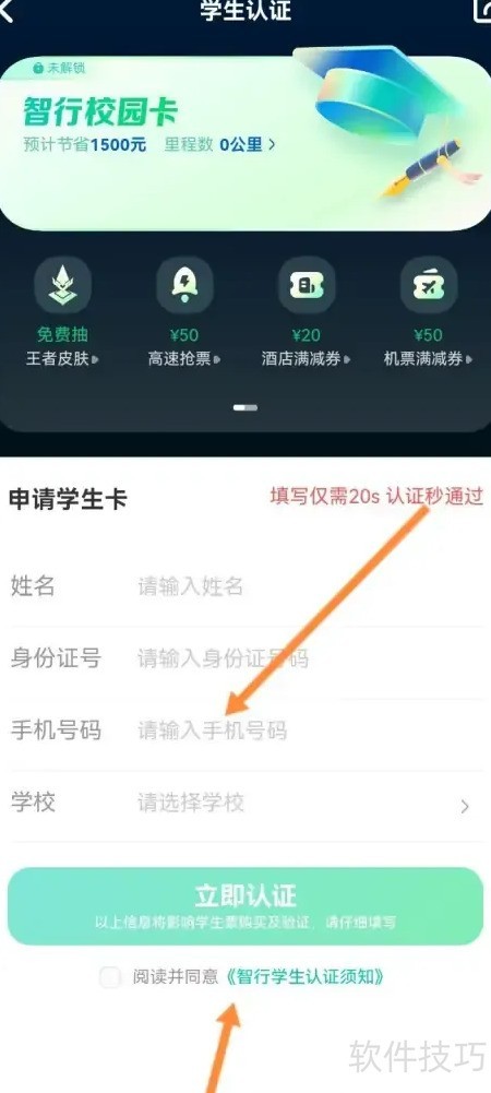 3、 输入学生资料后,点击下方立即认证按钮即可完成,操作所示。