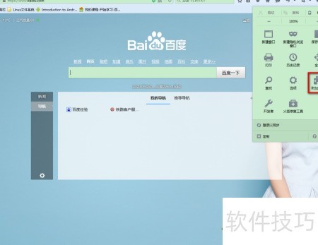 1、 启动火狐浏览器,点击右上角菜单按钮,即可展开系统菜单栏。