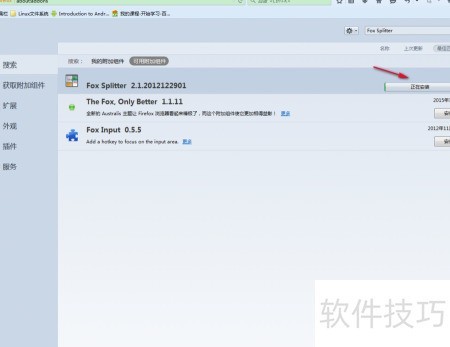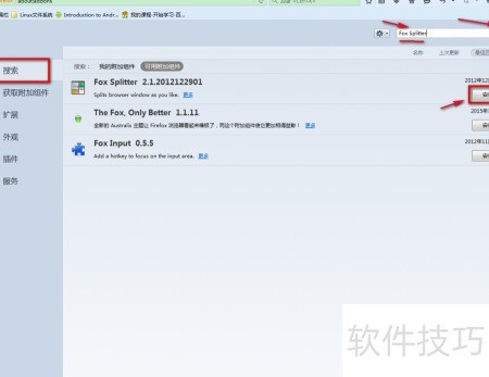 4、 找到搜索结果中的Fox Spiltter组件,点击进行安装即可。