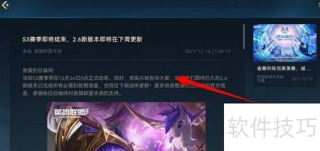 2、 S3赛季即将落幕,2.6新版下周上线,点击了解详情。