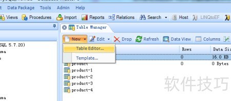 5、 在表格管理器中,点击新建菜单,选择其中的表格编辑器功能即可。