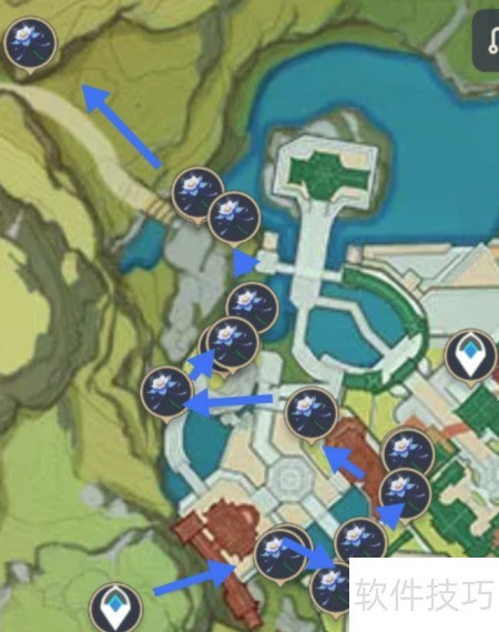 2、 轻策庄有20朵琉璃百合,从传送点出发可依次采集。