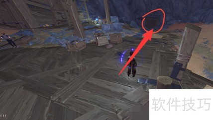 3、 找到三个黄色火药桶并引爆,炸开通路后沿路前行至隧道口,地面有强化跳跃装置,向左跃上木制平台即可继续前进。
