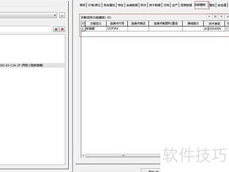 7、 在右侧功能模板栏中输入部件连接点编号及相关技术参数。