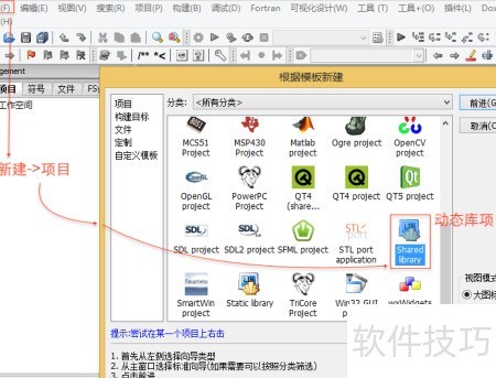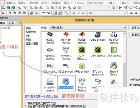 14、 IDE中选择合适项目模板,按图示操作即可生成静态库。