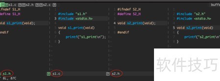 1、 创建两个源文件 s1.c 和 s2.c,并为它们分别编写对应的头文件 s1.h 与 s2.h。
