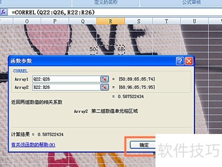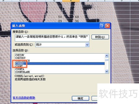 4、 选取相关系数函数,见图示